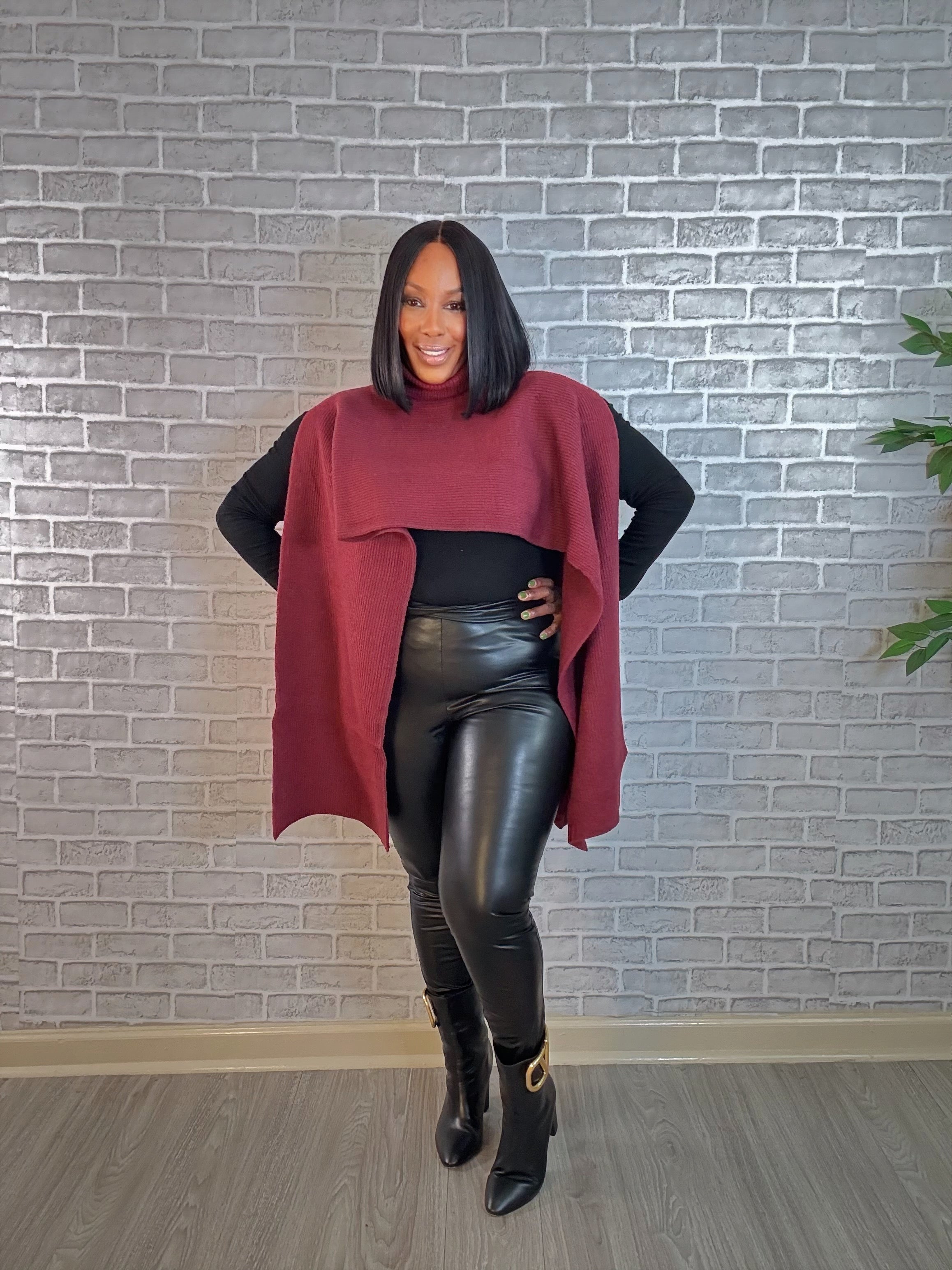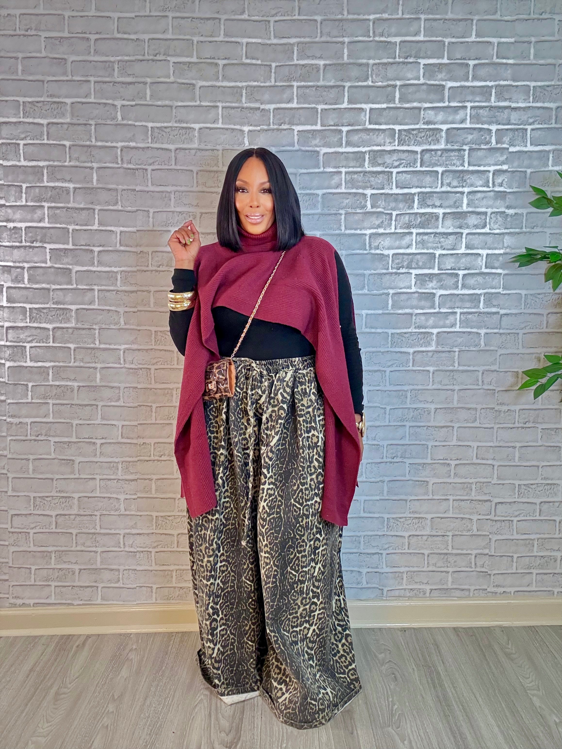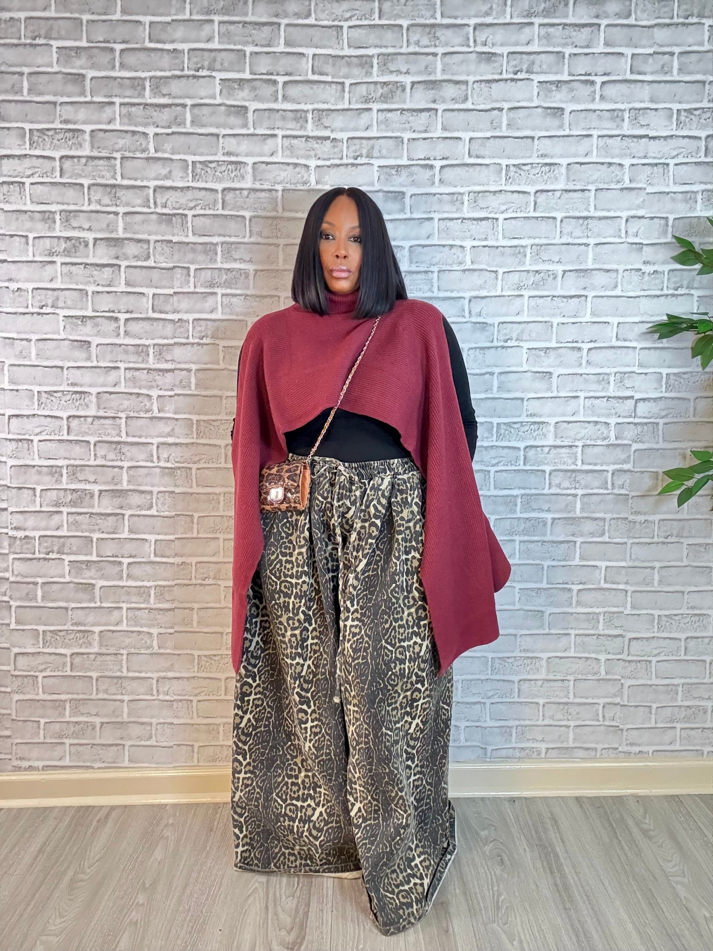 Meet the Bordeaux Breeze Mock Neck Sweater—where rich autumn color meets runway-ready drama. This luxe knit drapes effortlessly across your shoulders, creating a sculpted silhouette that feels both powerful and sensual.